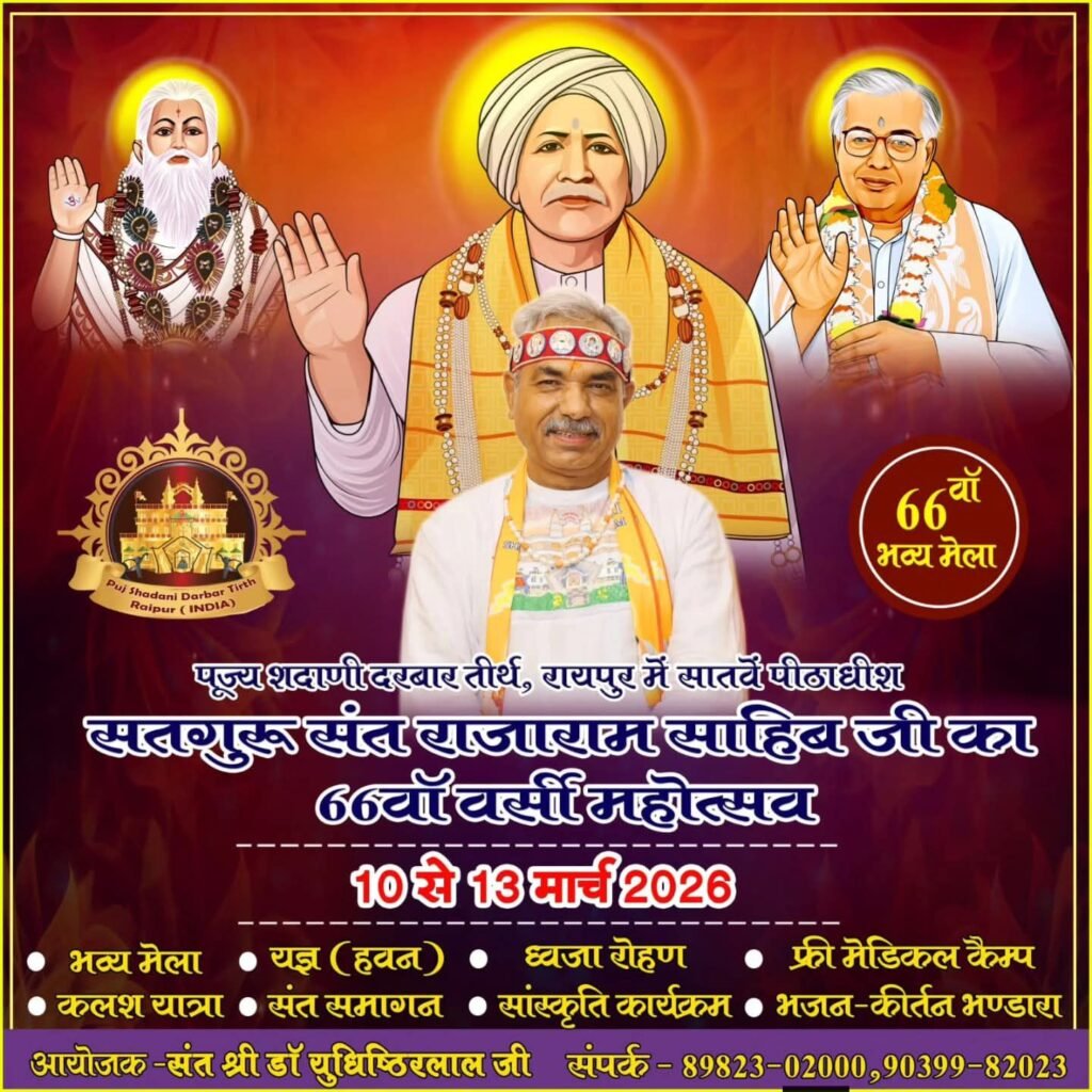 बाबाजी न्यूज़  रायपुर में श्रद्धा और आस्था का महापर्व: पूज्य शदाणी दरबार तीर्थ में संतश्री राजाराम साहिब जी का 66वां वर्षोत्सव महोत्सव 10 से 13 मार्च तक