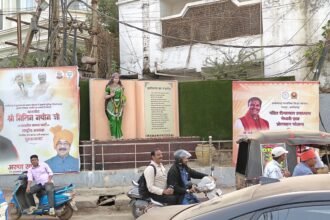 छत्तीसगढ़ महतारी VIP चौक बना फ्लेक्स जोन ¥ नियमों की खुलेआम अनदेखी महतारी के सौंदर्य पर असर