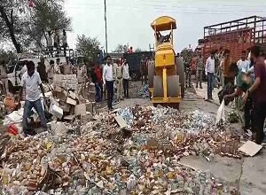 CG – दो करोड़ की अवैध शराब पर चला बुलडोजर, 10 साल पुराने मामले में जब्त 40 हजार लीटर मदिरा को पुलिस ने किया नष्ट
