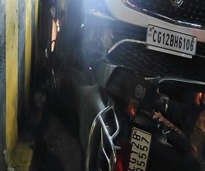 गंभीर रूप से घायल बाइक सवार को हॉस्पिटल ले जाया गया है।पुलिस वाहन के नंबरों से आगे खोजबीन कर रही है।इस संबंध में पता चला है कि श्री राम जानकी मंदिर ,बुधवारी के सामने छत्तीसगढ़ डिज्नी मेला के पास विपरीत दिशा से आ रही हीरो होंडा बाइक को तेज रफ्तार एसयूवी एमजी हैक्टर कार ने जोरदार टक्कर मार दी और करीब 150 फीट घसीटते हुए भागती चली गई।सड़क पर खून के निशान की पूरी लकीर बन गई है। बाइक के नीचे फंस जाने और डिवाइडर से टकराने पर कार रुक गई।हादसे के बाद मौके पर लोगों की भीड़ जमा हो गई। राहगीरों की मदद से गाड़ी के नीचे दबे घायल युवक को निकाल कर अस्पताल रवाना किया गया है।