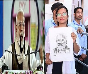 जब प्रधानमंत्री नरेंद्र मोदी सभा को संबोधित कर रहे थे। उस दौरान उनकी नजर एक बालिका पर पड़ी, जो उनकी पेंटिंग हाथ में उठाकर काफी देर से खड़ी थी। प्रधानमंत्री श्री नरेंद्र मोदी ने उसकी भावना को समझा और मंच से कहा कि वहां एक बेटी पेंटिंग बना के लाई हैं, बेचारी कब से हाथ ऊपर रखे खड़ी हैं। मैं जरा सिक्योरिटी वालों से कहूंगा। उस बेटी को… पेंटिंग के पीछे बेटा नाम-पता लिख देना, मैं आपको चिट्ठी भेजूंगा। जरा इस पेंटिंग को कोई कलेक्ट करके मेरे तक पहुंचा दे। बहुत-बहुत धन्यवाद बेटा, बहुत धन्यवाद।”
