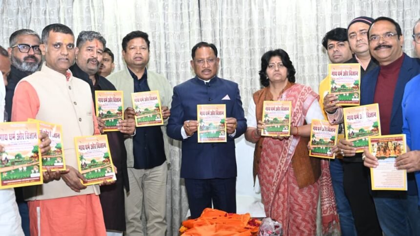 बाबाजी न्यूज़ रायपुर __छत्तीसगढ़ राज्य गौ संरक्षण एवं संवर्धन समिति द्वारा आयोजित गौ विज्ञान परीक्षा 2025 हेतु संदर्भ ग्रंथ गाय धर्म और विज्ञान के नवीनतम संस्करण का विमोचन प्रदेश के मुख्यमंत्री माननीय विष्णुदेव साय जी ने अपने निवास में आयोजित एक संक्षिप्त कार्यक्रम में किया।