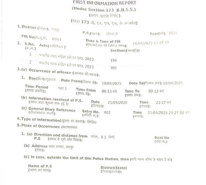 यह मामला रायपुर के कोतवाली थाना क्षेत्र से जुड़ा है, जहां पुलिस ने अनुराग कश्यप के खिलाफ भारतीय न्याय संहिता (BNS) की धारा 196 और 302 के तहत अपराध दर्ज किया है।