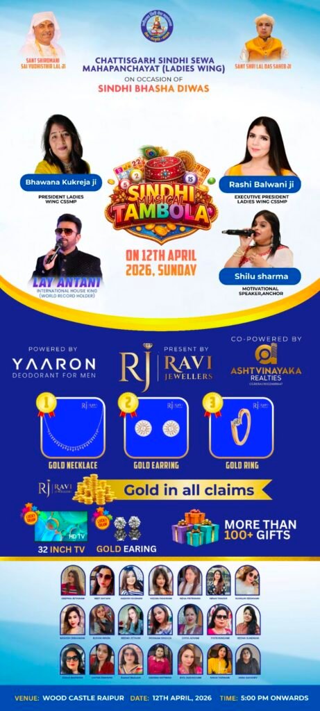 12 अप्रैल को होने वाला यह “सिंधी तम्बोला” कार्यक्रम निश्चित ही छत्तीसगढ़ के सामाजिक आयोजनों में एक विशेष स्थान बनाएगा और बड़ी संख्या में लोगों की भागीदारी देखने को मिलेगी।