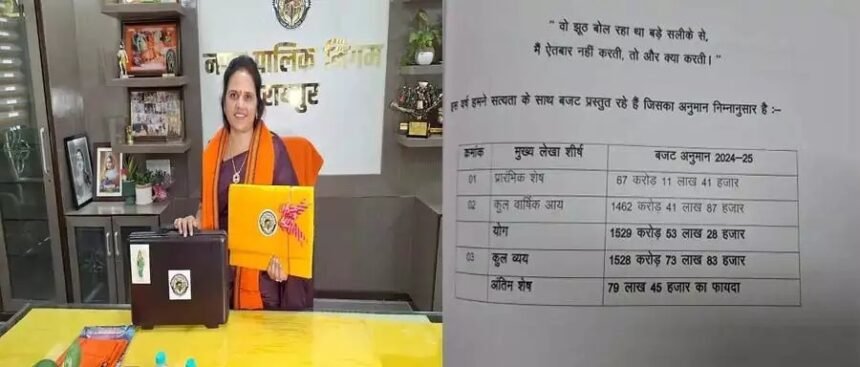 रायपुर : रायपुर नगर निगम में मेयर मीनल चौबे ने 1529 करोड़ 53 लाख 28 हजार रुपए का बजट पेश कर दिया है। महापौर ने इसे फायदे का बजट बताया है जिसमें सभी वर्ग का ध्यान रखा गया है। इससे पहले मेयर मीनल चौबे पीले रंग की मखमली फाइल में बजट लेकर निगम कार्यालय पहुंची थीं। फाइल में एक तरफ निगम का लोगो तो दूसरी तरफ छत्तीसगढ़ महतारी की तस्वीर छपी है।