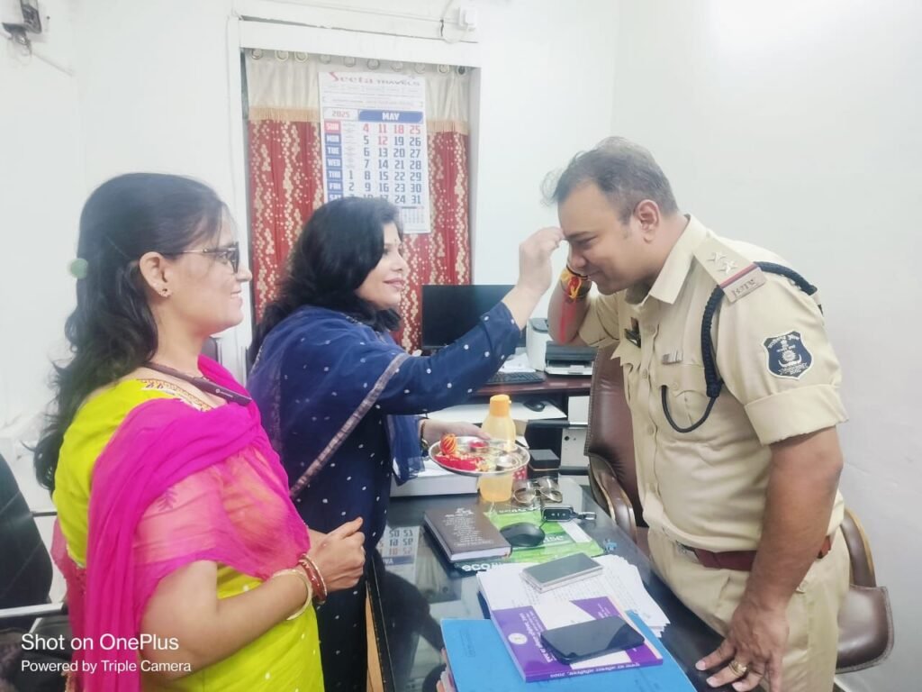 आज महिला सुरक्षा फाउंडेशन के द्वारा संगठन के राष्ट्रीय अध्यक्ष श्री मान सुशील मालिक जी के निर्देशानुसार रक्षा बंधन का कार्यक्रम रखा गया जिसमें सिविल लाइन थाना रायपुर के सब इंस्पेक्टर विक्रम सर को रक्षा सूत्र बांधकर राखी का कार्यक्रम संपन्न किया गया जिसमें बाबाबजी न्यूज के संपादक श्री मान प्रेम सोनी जी जिला अध्यक्ष श्री मति संगीता शर्मा श्री मति अंजना शर्मा खिलेश्वरी बघेल श्री मति सावित्री सेन उपस्थित थे ।हम धन्यवाद करना चाहेंगे महिला सुरक्षा संगठन को जिसने हमें सराहनीय कार्य करने का अवसर प्राप्त हुआ।।।