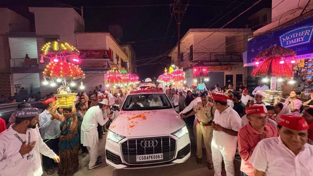 विमानतल पर बाबाजी का स्वागत छत्तीसगढ़ चैंबर ऑफ कॉमर्स के अध्यक्ष श्री सतीश थौरानी, पार्षद एवं MIC सदस्य अमर गिदवानी, पार्षद एवं जोन अध्यक्ष सचिन मेंघानी समिति अध्यक्ष श्री प्रकाश जादवानी, सचिव श्री तेजकुमार बजाज श्री राजकुमार आहूजा, उपाध्यक्ष श्री मुरली मनोहर बुलचंदानी श्री दीपक जादवानी दीपक आडवानी अमर जगिया बंटी दुर्गानी एवम् शहर के कई पंचायतों के मुखीगण एवम् गणमान्य उपस्थित थे विमानतल से बाबाजी का काफिला महावीर नगर स्थित कुकरेजा फॉर्म हाऊस के पास पहुंचा जहां हरे माधव परिवार के साथ रायपुर शहर की संगत एवम् महाराष्ट्र मध्यप्रदेश उत्तर प्रदेश तथा छत्तीसगढ़ के विभिन्न शहरों से पधारी संगत बाबाजी का स्वागत करने बाबाजी का श्री दर्शन करने हेतु हजारों की संख्या में श्रद्धालु उपस्थित थे यहाँ से भव्य शोभायात्रा निकाली गई