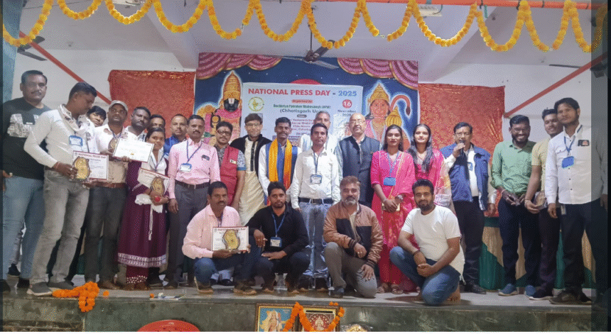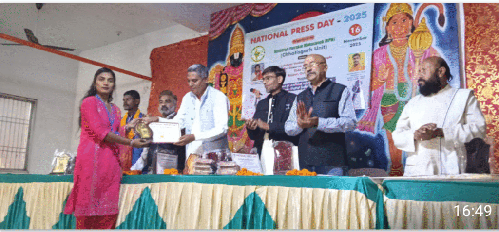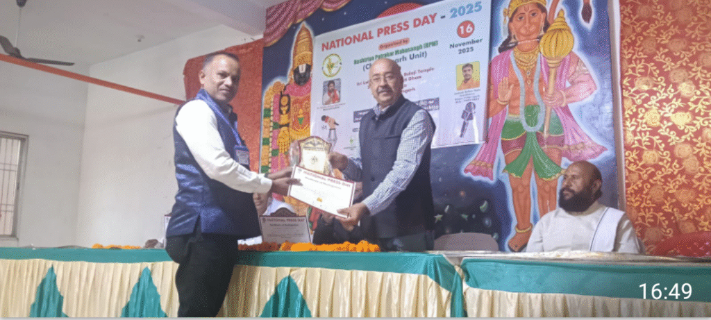 बाबाजी न्यूज़ तिल्दा 16-11-25 __राष्ट्रीय पत्रकारिता दिवस पर आयोजित पत्रकारों द्वारा संगोष्ठी का आयोजन किया गया जिसमें पूरे छत्तीसगढ़ प्रदेश से अलग-अलग हिस्सों से पत्रकार बंधु एकत्रित हुए जिसमें कई मुद्दों पर चर्चा की गई सर्वप्रथम भारत माता छत्तीसगढ़ महतारी की जय घोष के साथ सरस्वती माता की प्रतिमा पर फूल माला के साथ दीप प्रज्वलजीत किया गया जिसमें मुख्य अतिथि के रूप में CPM के प्रदेश अध्यक्ष गजेंद्र रथ वर्मा कार्यक्रम की अध्यक्षता जिला पंचायत सदस्य प्रतिनिधि वरिष्ठ समाजसेवी महेंद्र साहू जी थे विशिष्ट अतिथि में CPM के प्रदेश सचिव परितोष शर्मा CPM के प्रदेश उपाध्यक्ष प्रेम सोनी व धर्मगुरु सुरेंद्र द्विवेदी जी को आमंत्रित किया गया था