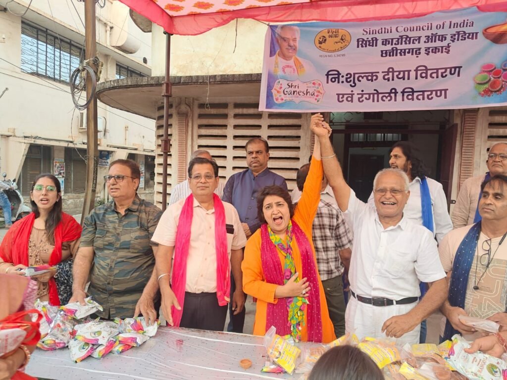 सिंधी काउंसिल ऑफ इंडिया छत्तीसगढ़ इकाई द्वारा निशुल्क दीया एवम रंगोली वितरण का आयोजन रखा गया सिंधी काउंसिल के प्रदेश अध्यक्ष ललित जैसिंघ ने बताया बड़ी संख्या में नागरिकों ने जयश्रीराम के नारे लगाए एवम बहुत से लोगों ने दीए लेते ही माथा पर लगाया और कहा पहला दीया हम मंदिर में जलाएंगे महिला विंग अध्यक्ष काजल सचदेव ने कहा बड़ी संख्या में रंगोली और दीया वितरण किया जा रहा है समाजसेवी किशोर आहूजा ने कहा दिवाली के पूर्व सबके घर में रोशनी हो और सभी खुश रहे इस अवसर पर सिंधी काउंसिल के प्रदेश अध्यक्ष ललित जैसिंघ महिला विंग अध्यक्ष काजल सचदेव मुखी अछूमल गावरी श्रीचंद लखवानी किशोर आहूजा जतिन नचरानी नरसा लालवानी सुरेश सचदेव नितिन कृष्णानी धनेश मटलानी रितेश वाधवा तेजकुमार बजाज निलेश तारवानी सुमित आठवानी उपस्थित थे