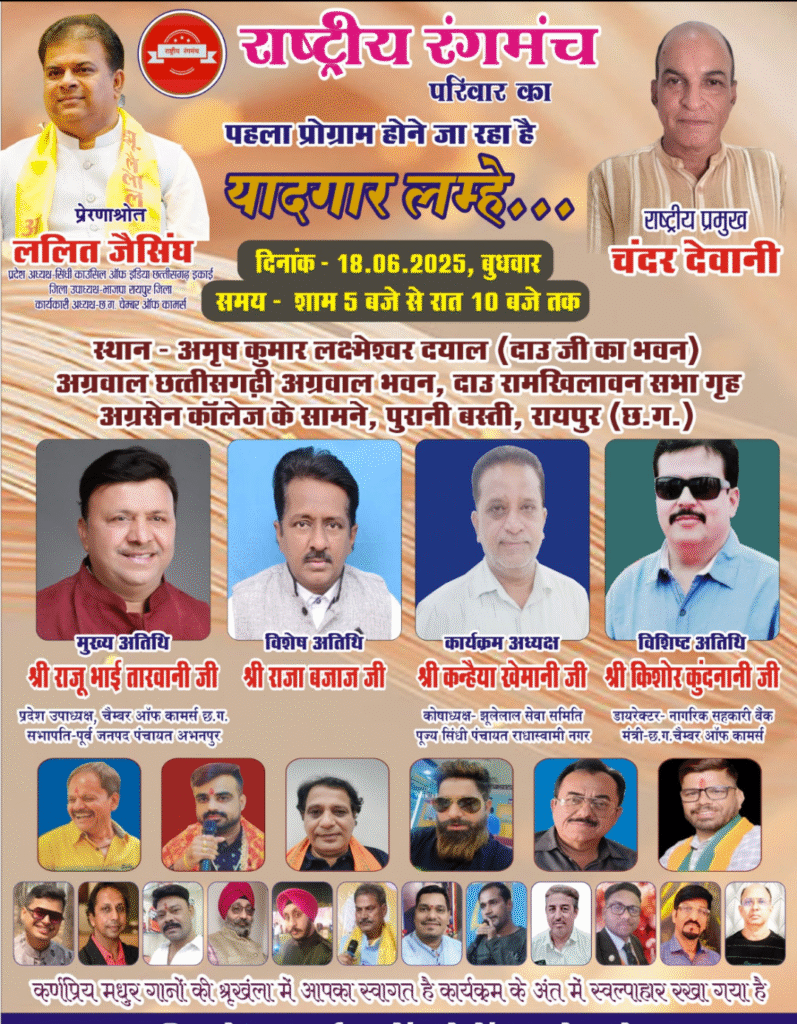 Next Article पूज्य छत्तीसगढ़ सिंधी पंचायत, युवा विंग, महिला विंग द्वारा सिंधी फ़िल्म फेस्टिवल का आयोजन